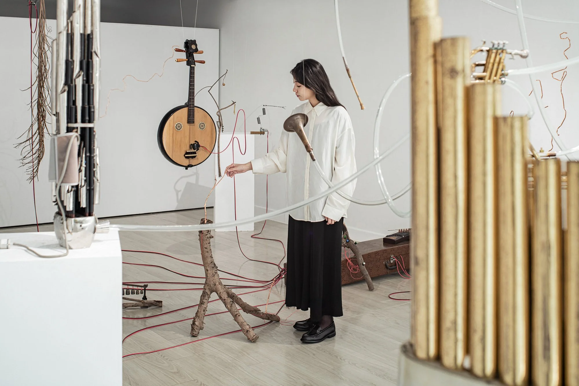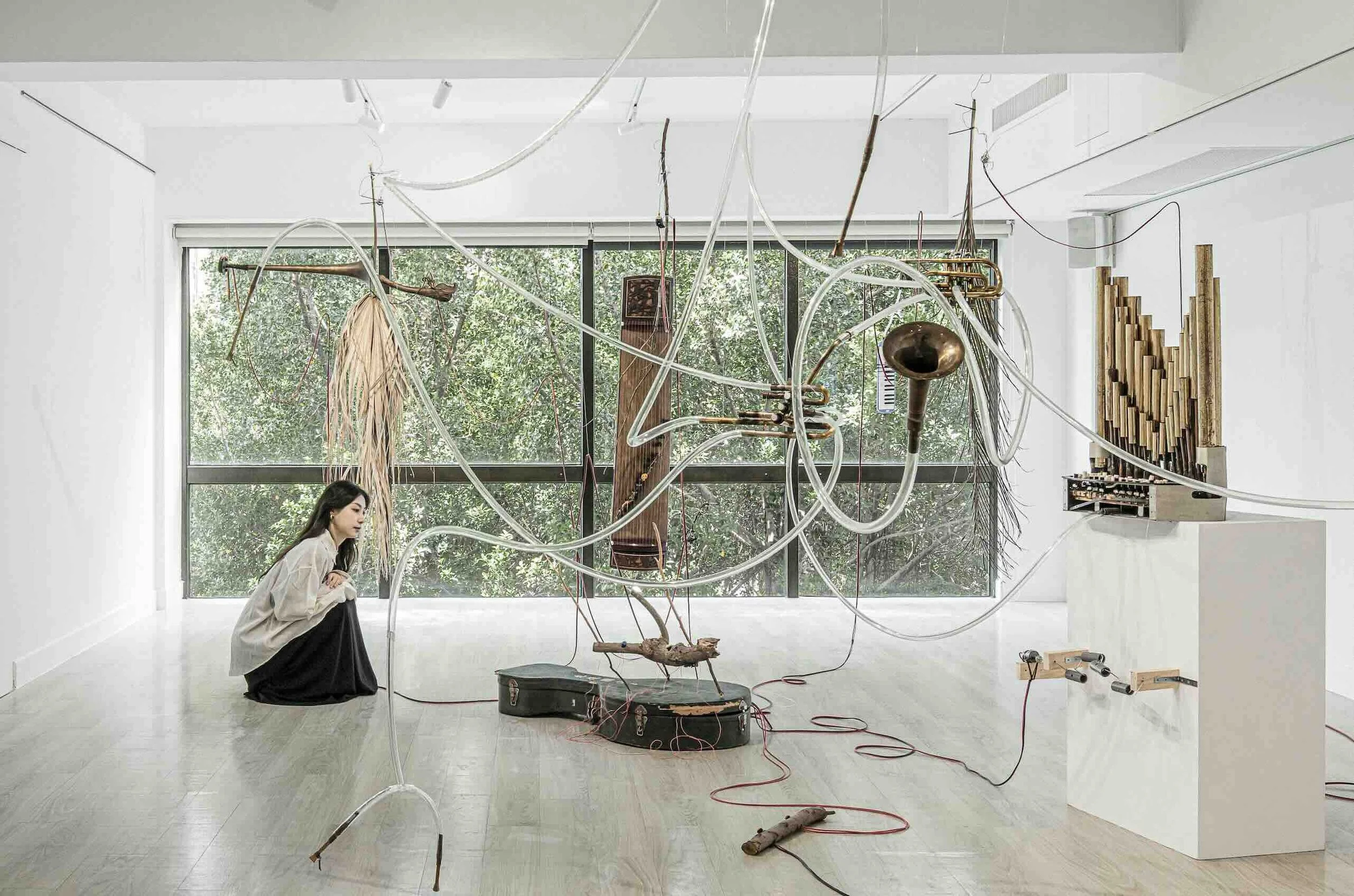 Sheng Rebirth is situated in the mythological forest. This is the site for tales of transformation across cultures: where Eastern nobles meditate among sacred trees and Western heroes enter the wilderness to emerge changed. The musical instruments in the exhibition channel these narratives of metamorphosis. Unlike the phoenix's dramatic ascent, these rebirths emerge softly, through strange, delicate sounds their mkers never intended.